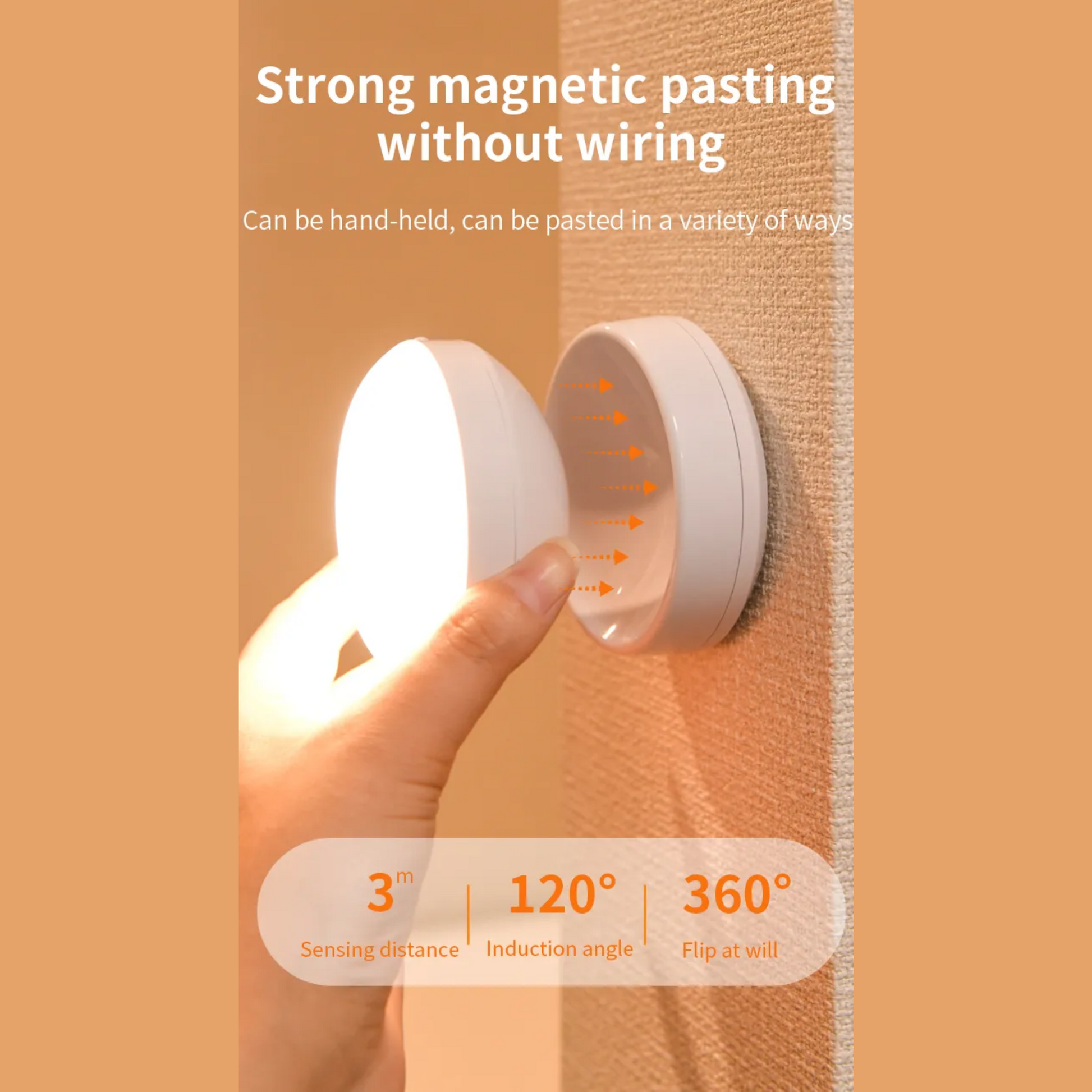 Let light follow your rhythm with GlowTrack, a smart motion sensor lamp designed for seamless functionality day or night. With automatic activation within 3–5 meters, it lights up only when needed—saving energy while enhancing convenience. The rotating head lets you direct the glow exactly where you want it, while soft light options (warm yellow or bright white) adapt to your space and comfort. Equipped with three modes—ON, OFF, and AUTO—it’s perfect for hallways, closets, bedside use, and more. Magnetic, portable, and easy to mount, GlowTrack brings light exactly where you need it, when you need it.